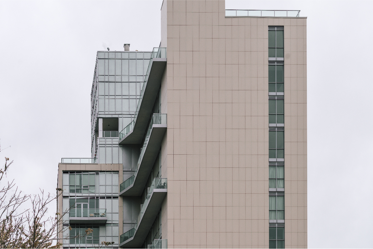 The building offers modernly designed two-story suites, a rooftop deck, a private gym, and units filled with natural light due to their floor-to-ceiling windows and balconies.